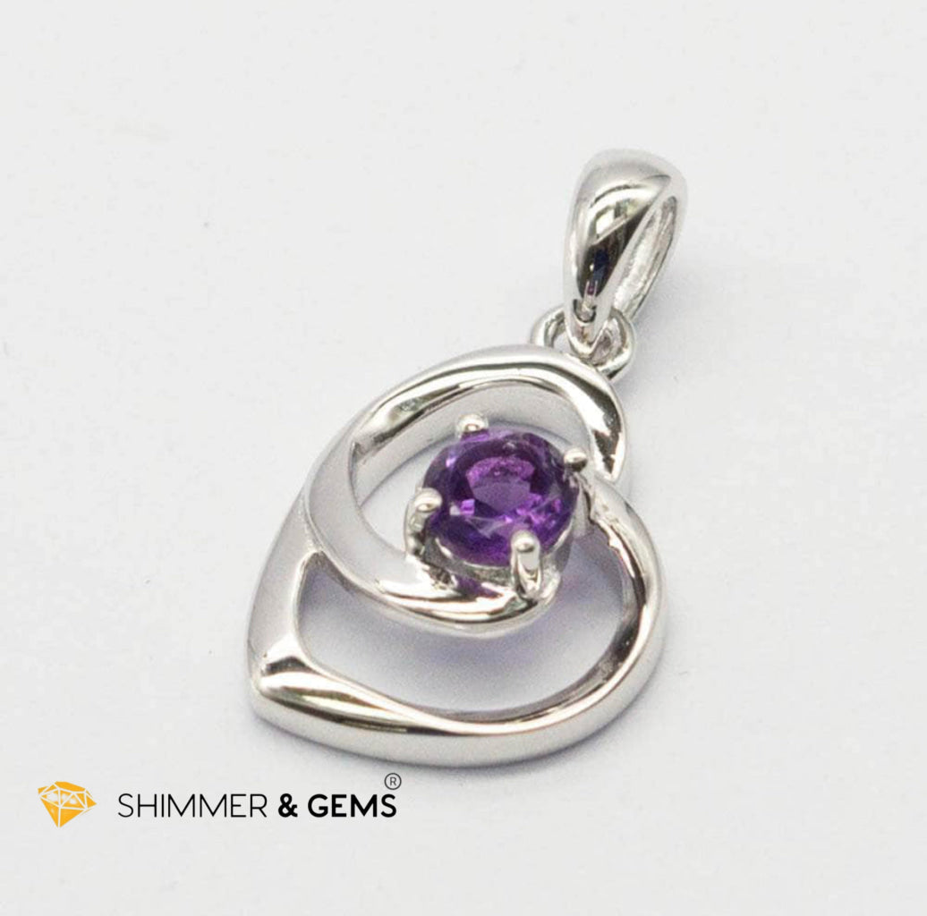 Amethyst Heart with Heart 4mm 925 Silver Pendant