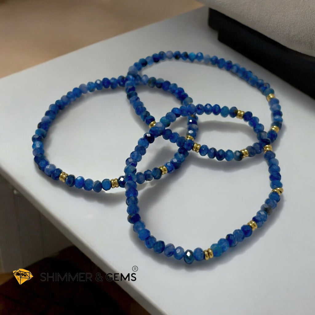 Blue Kyanite 3x4mm Faceted Rondelle with Stainless Steel Bracelet (High Vibes)