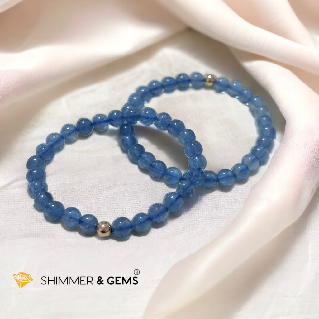Devil Blue Aquamarine Bracelet 6mm AAA TOP GRADE (Black Quartz Morion & Aquamarine) (Brazil) Premium, Encoded & Activated