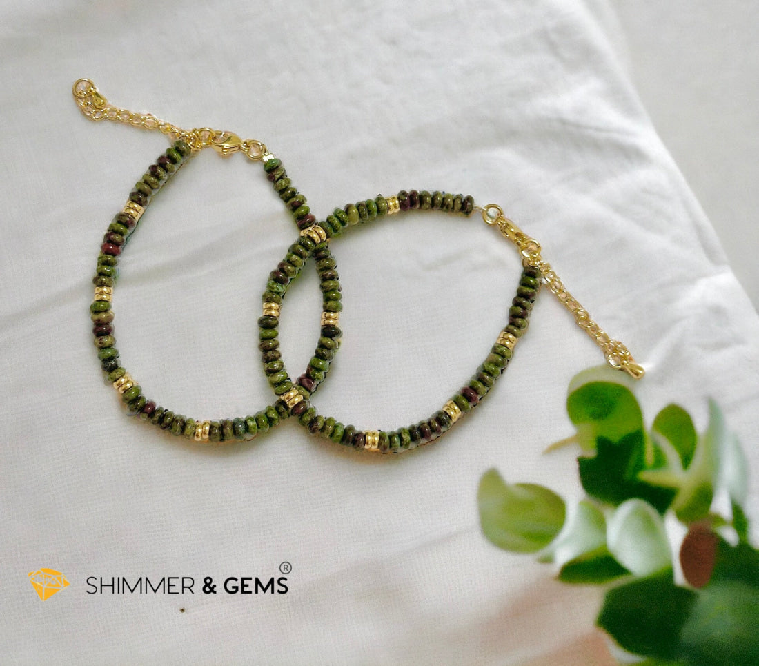 Dragon Bloodstone4mm Rondelle Bracelet with stainless steel chain