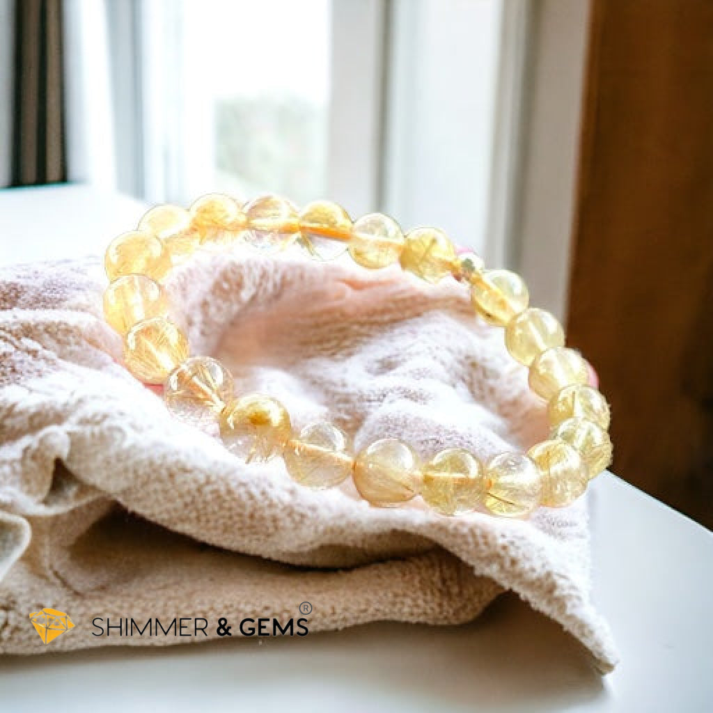 Golden Rutilated 8mm AAA Grade Bracelet with 14k gold filled Bead-Premium, Encoded & Activated