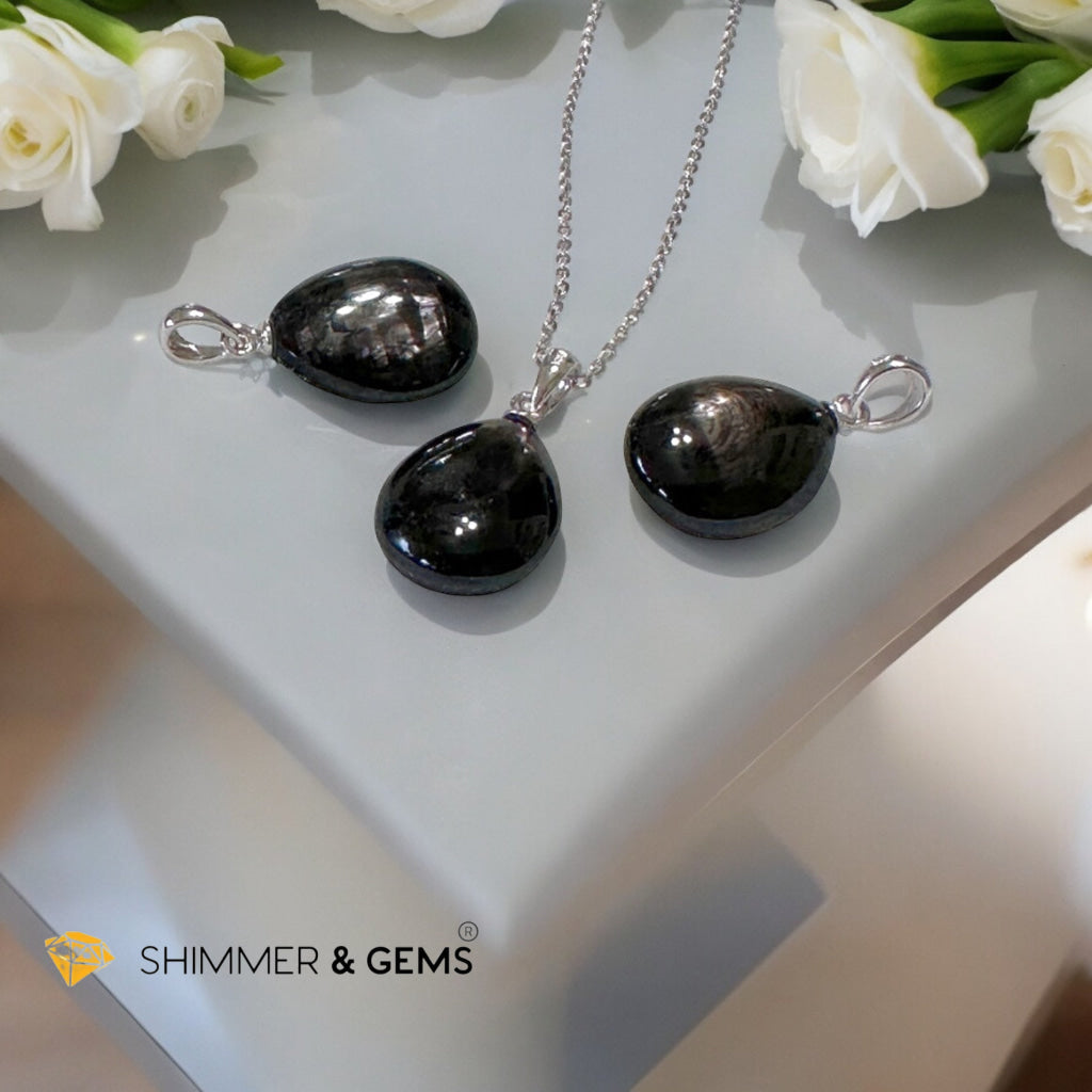 Hypersthene 925 Silver Drop Pendant (Egypt) AAA Grade (13x18x7mm)