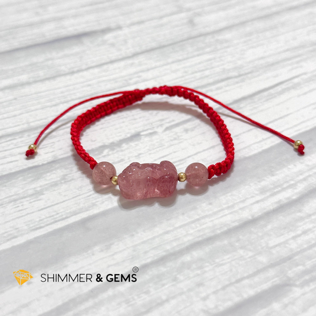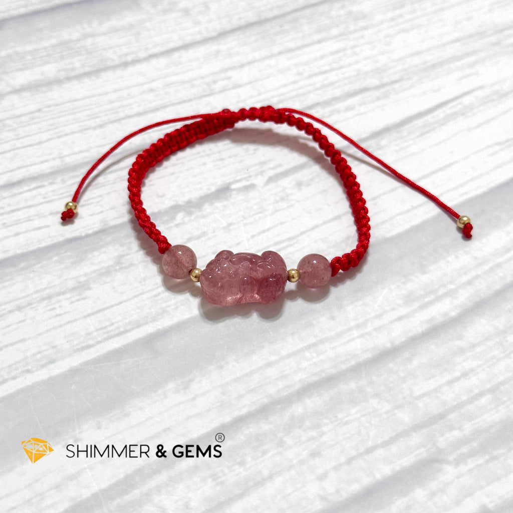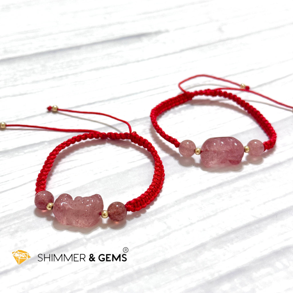 Lucky Wealth Pixiu Strawberry Quartz Red Woven Bracelet