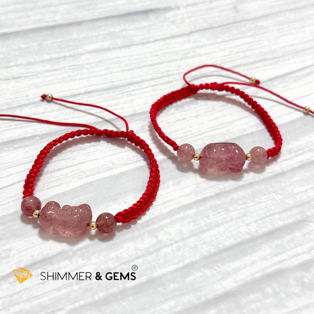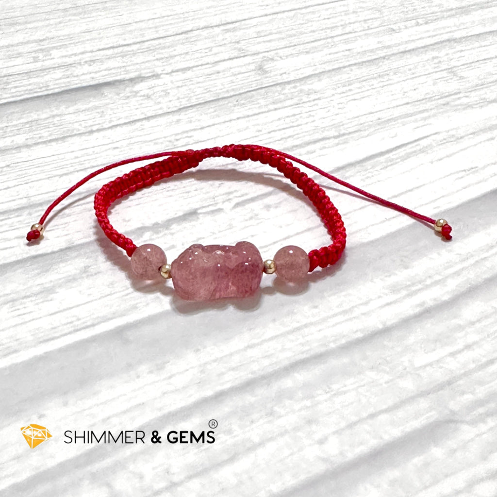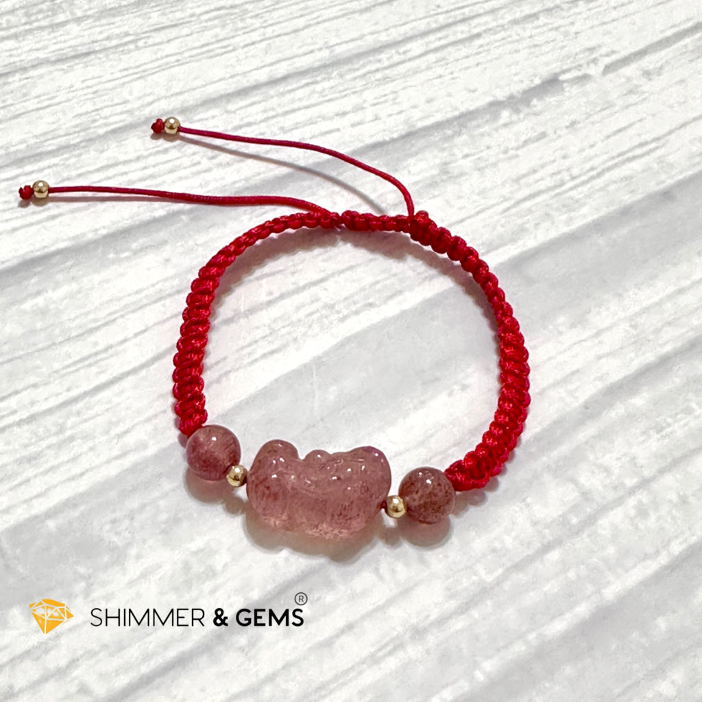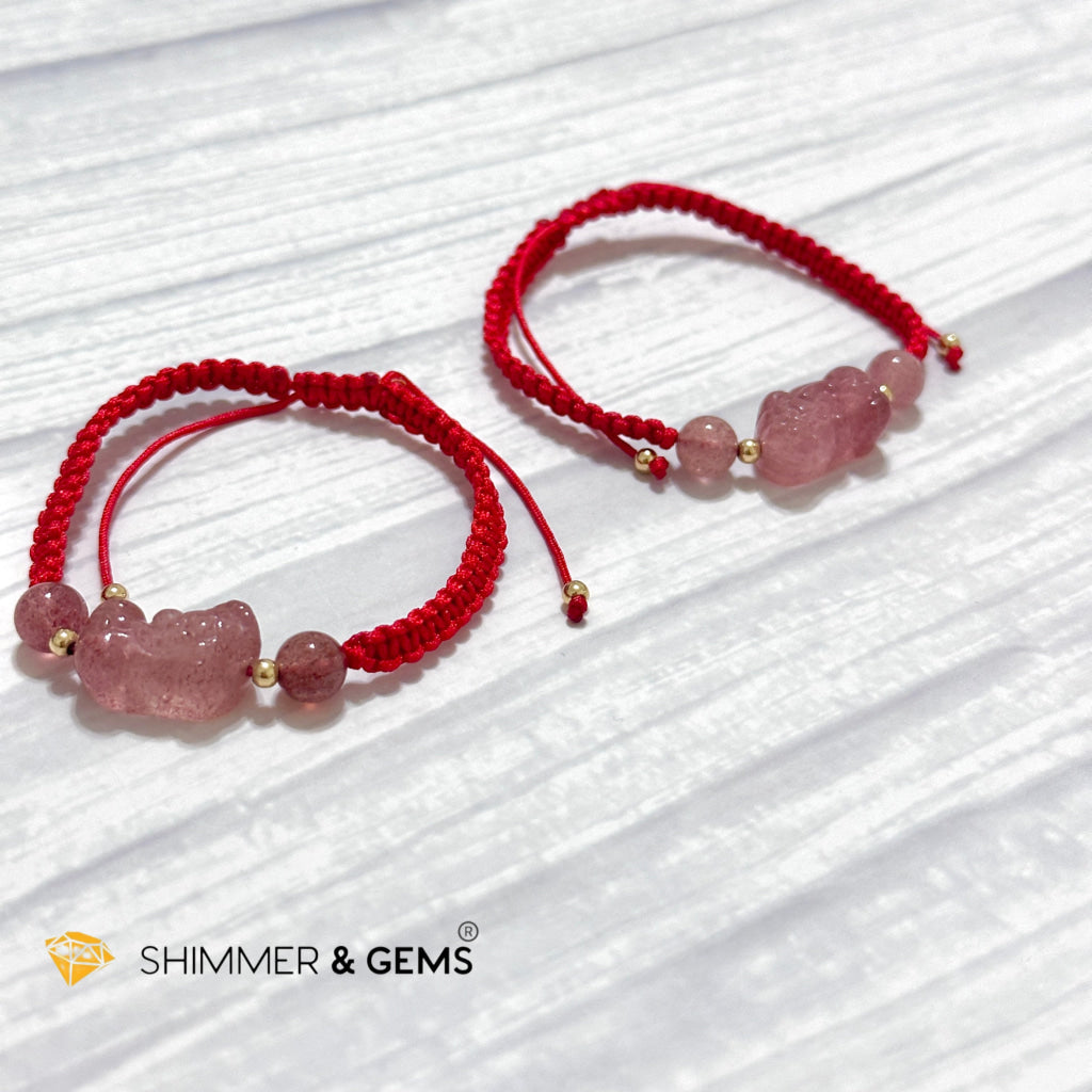 Lucky Wealth Pixiu Strawberry Quartz Red Woven Bracelet