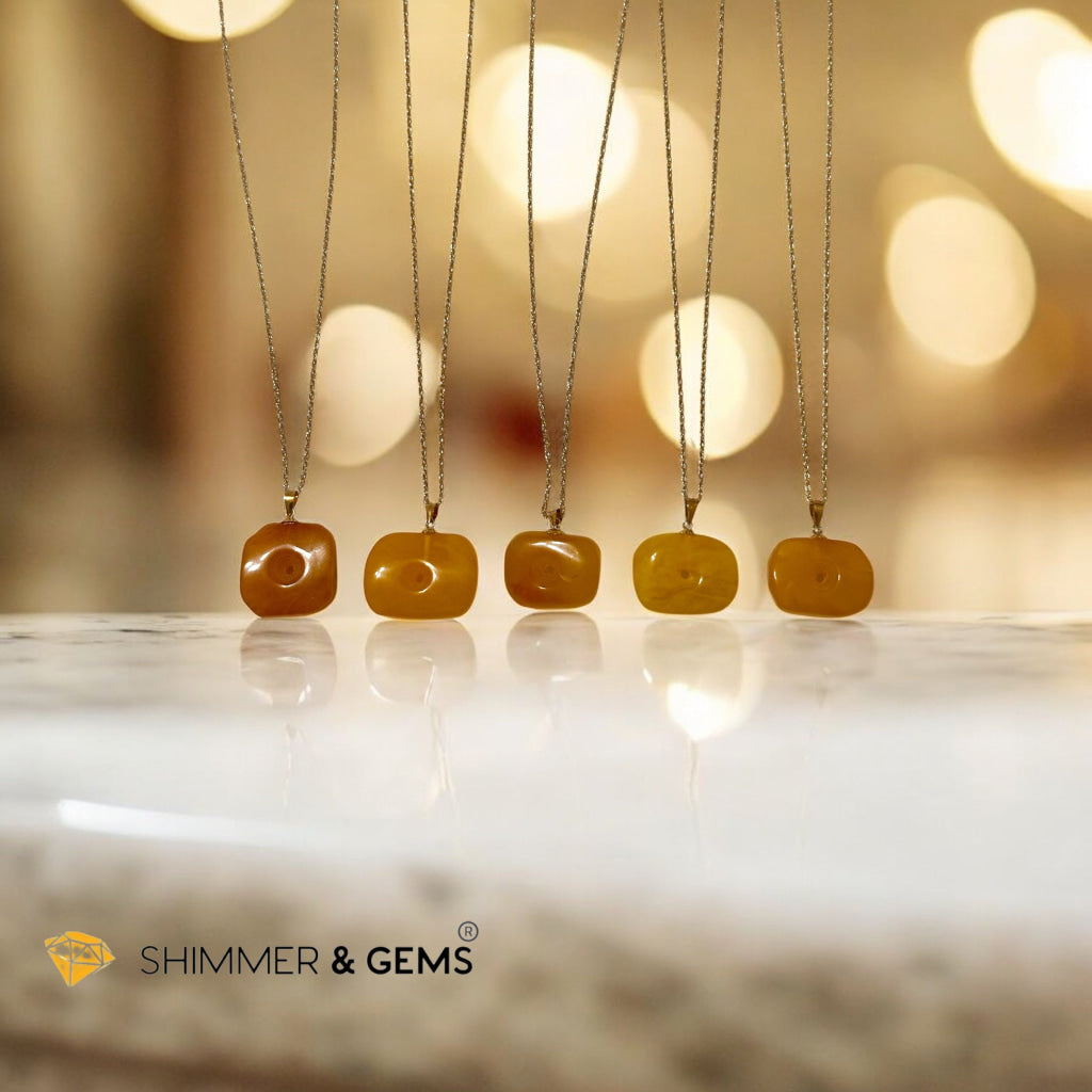 Each pendant carries Butter Amber, one of the most radiant ambers revered through centuries by both royals and mystics. Its golden hue embodies joy, lightness, and a natural optimism that uplifts the aura and settles the heart.