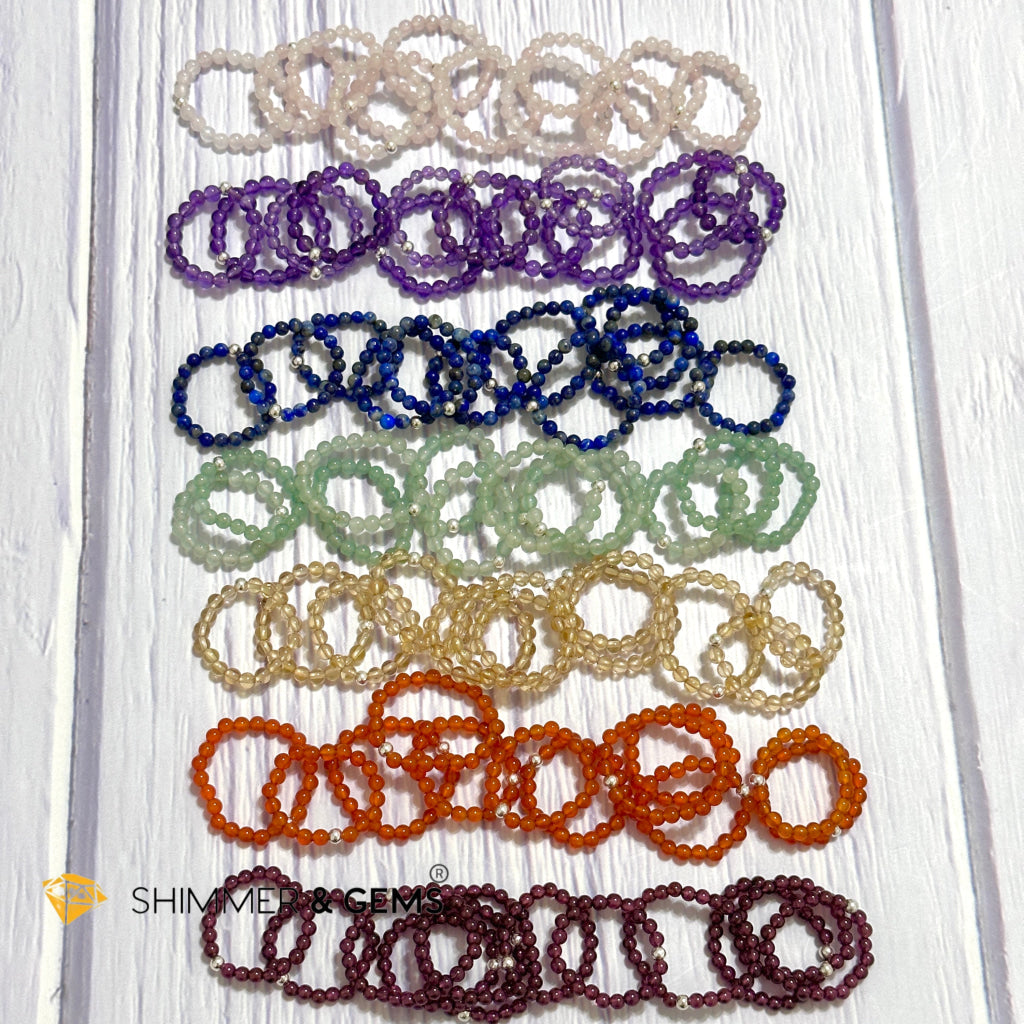Root Chakra Garnet 3mm Beads Ring with 925 Silver